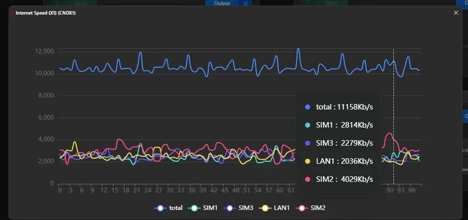 During operation, the X1 displayed relevant data on its screen, confirming a stable transmission rate of 10 Mbps. The Manager Max GUI provided real-time visibility into each network bonding, showing that the X1 maintained a consistent 10 Mbps bandwidth throughout the event.