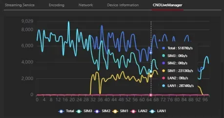 During operation, the X1 displayed relevant data on its screen, confirming a stable transmission rate. The CNDLive Manager GUI provides real-time visibility into each network bonding, showing that the X1 maintained a consistent bandwidth throughout the event.
