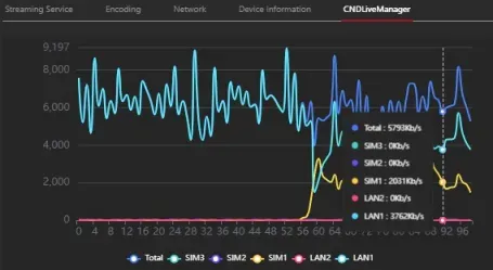 During operation, the X1 displayed relevant data on its screen, confirming a stable transmission rate. The CNDLive Manager GUI provides real-time visibility into each network bonding, showing that the X1 maintained a consistent bandwidth throughout the event.